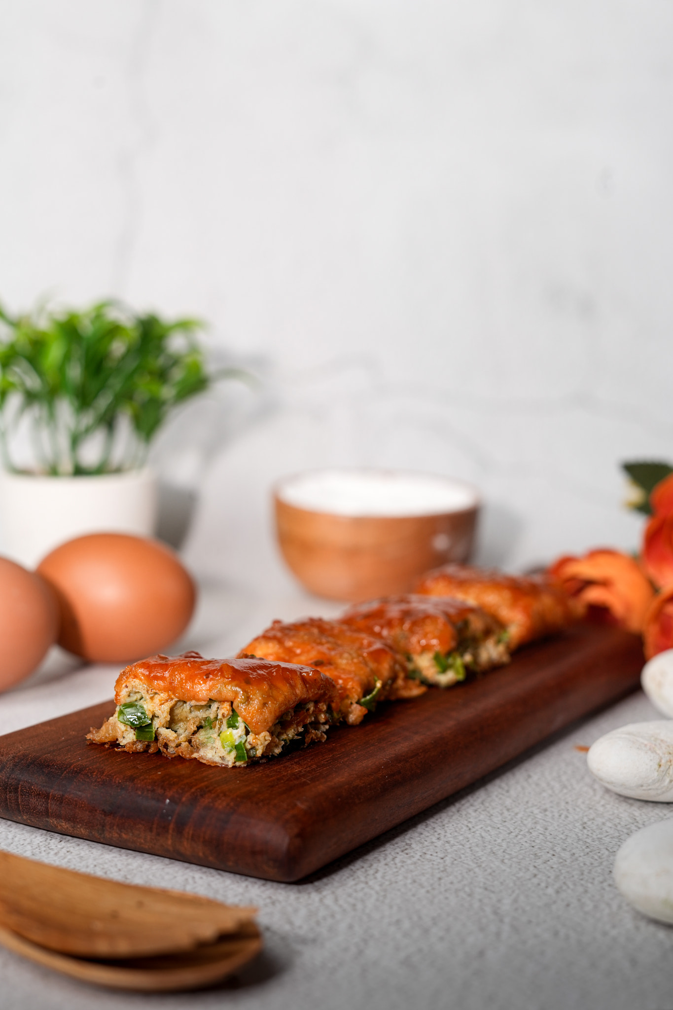 The ingredients of Martabak Bangka can vary, but the essential components include: